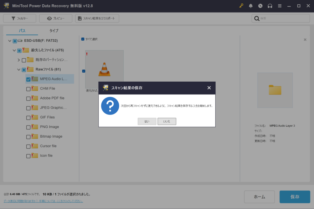 MiniTool Power Data Recoveryは非常に簡単なステップでデータ復元が行えるため、いざというときに備えて準備しておくソフトとしては非常に優秀なソフトだと感じました。